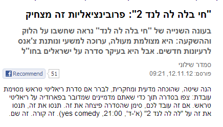 "לה לה לנד 2" ב- ynet פורסם על ידי smadarshiloni בתאריך 16 בנובמבר 2012 פורסם ב-חי בלה לה לנד, ריאליטי. תגיות: ynet, חי בלה לה לנד, לה לה לנד 2, ריאליטי. השארת תגובה ביקורת העונה השניה מ- ynet להמשך… נהניתם? ספרו לאחרים לשתף ב-X (נפתח בחלון חדש) X שלח קישור לחבר במייל (נפתח בחלון חדש) דואר אלקטרוני שתף ב-Pinterest (נפתח בחלון חדש) פינטרסט שתף בפייסבוק (נפתח בחלון חדש) פייסבוק אהבתי טוען...